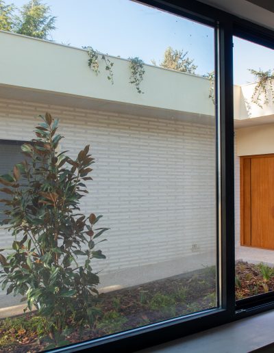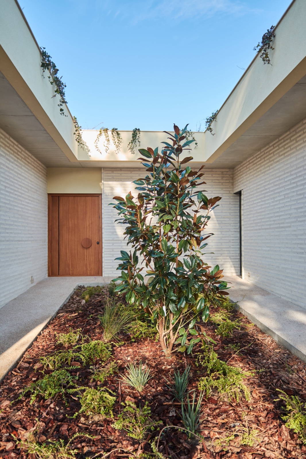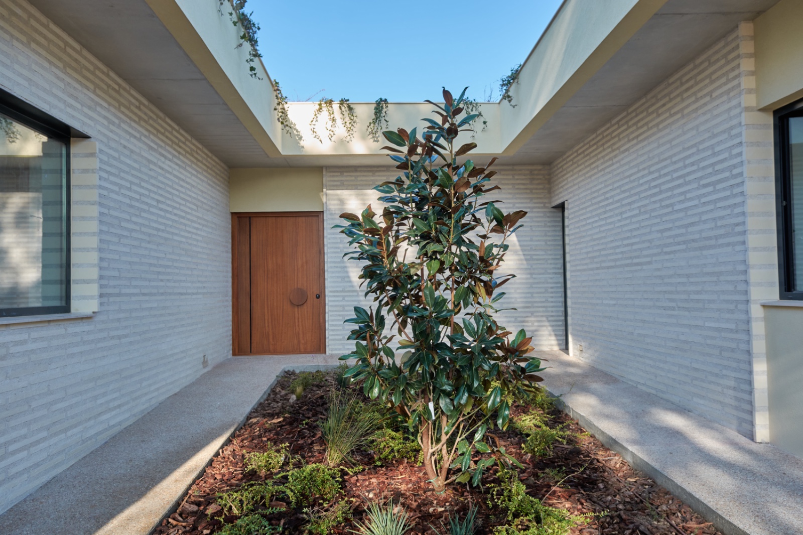 El acceso se organiza en torno a un patio interior ajardinado, que actúa como filtro entre exterior e interior, mejorando: