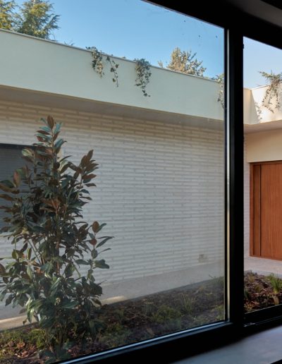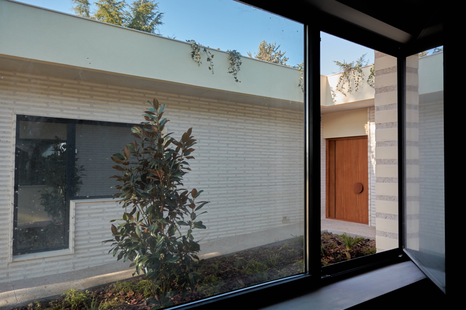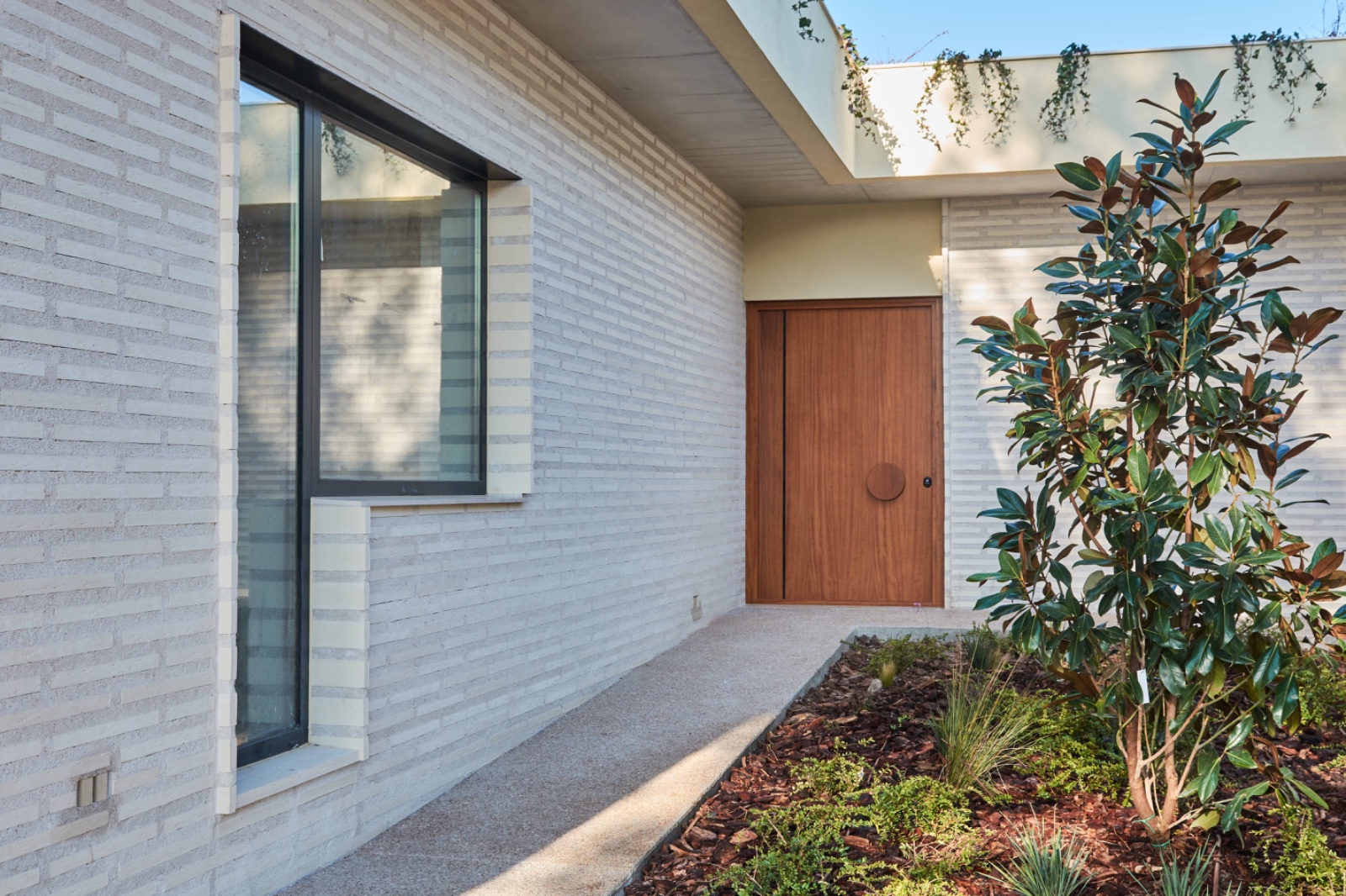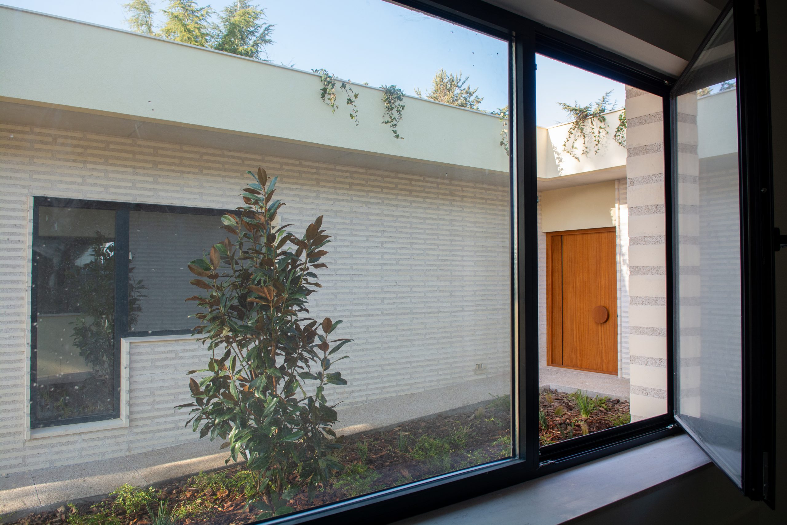 - Integración con carpinterías exteriores de aluminio negro para contraste contemporáneo