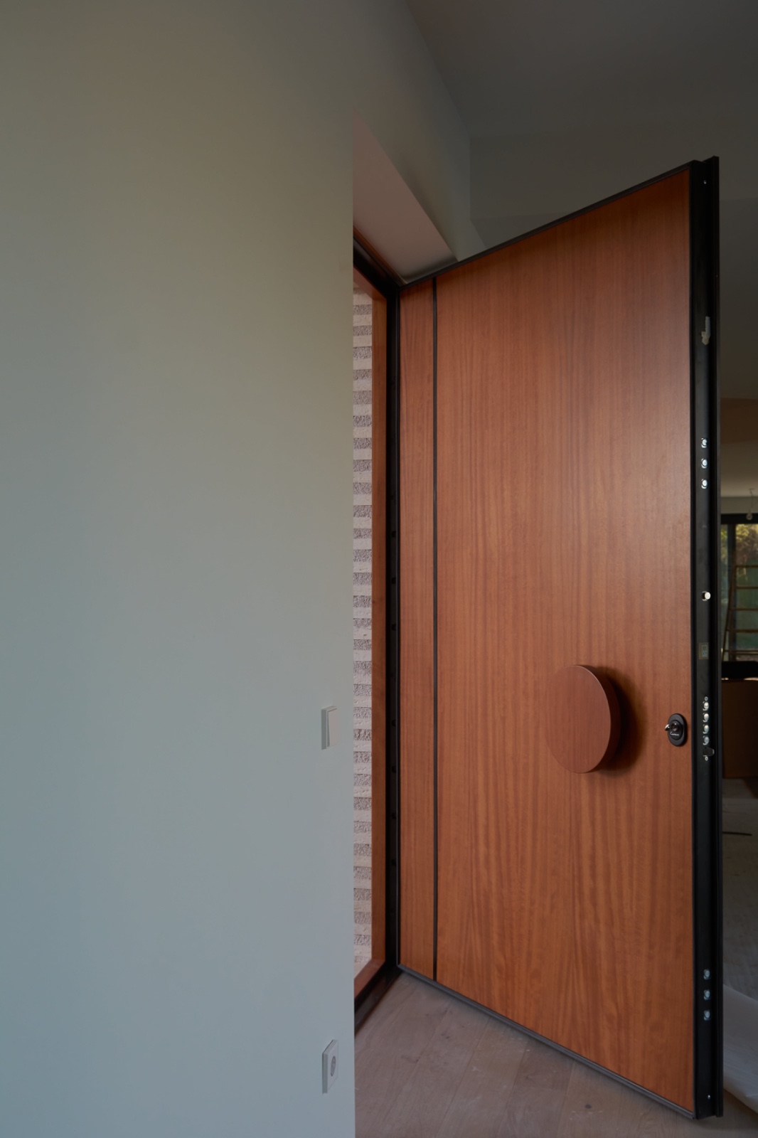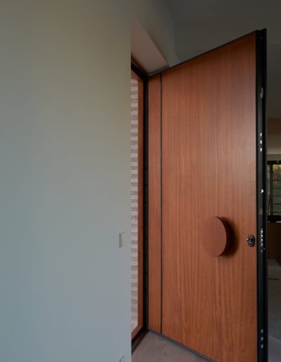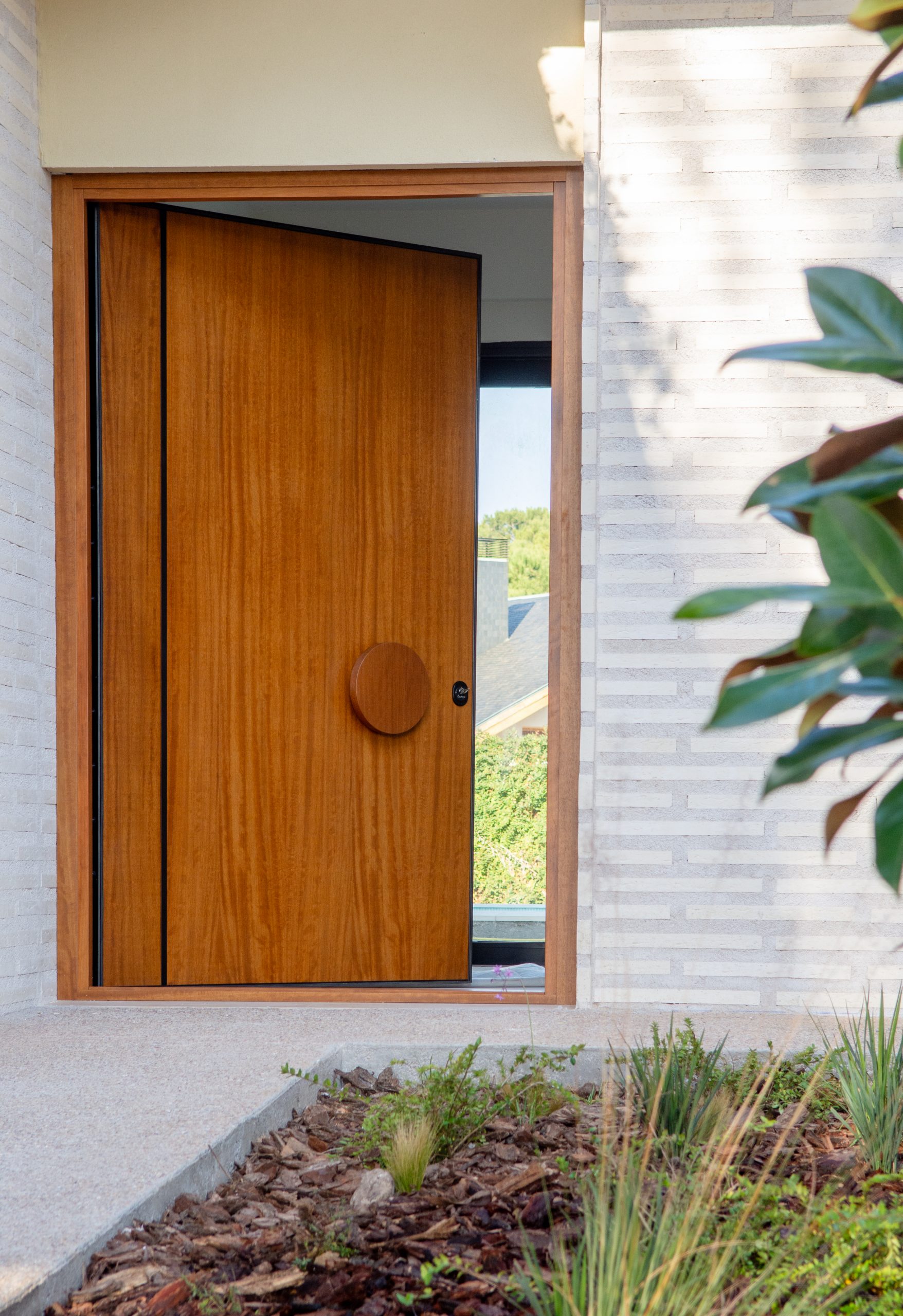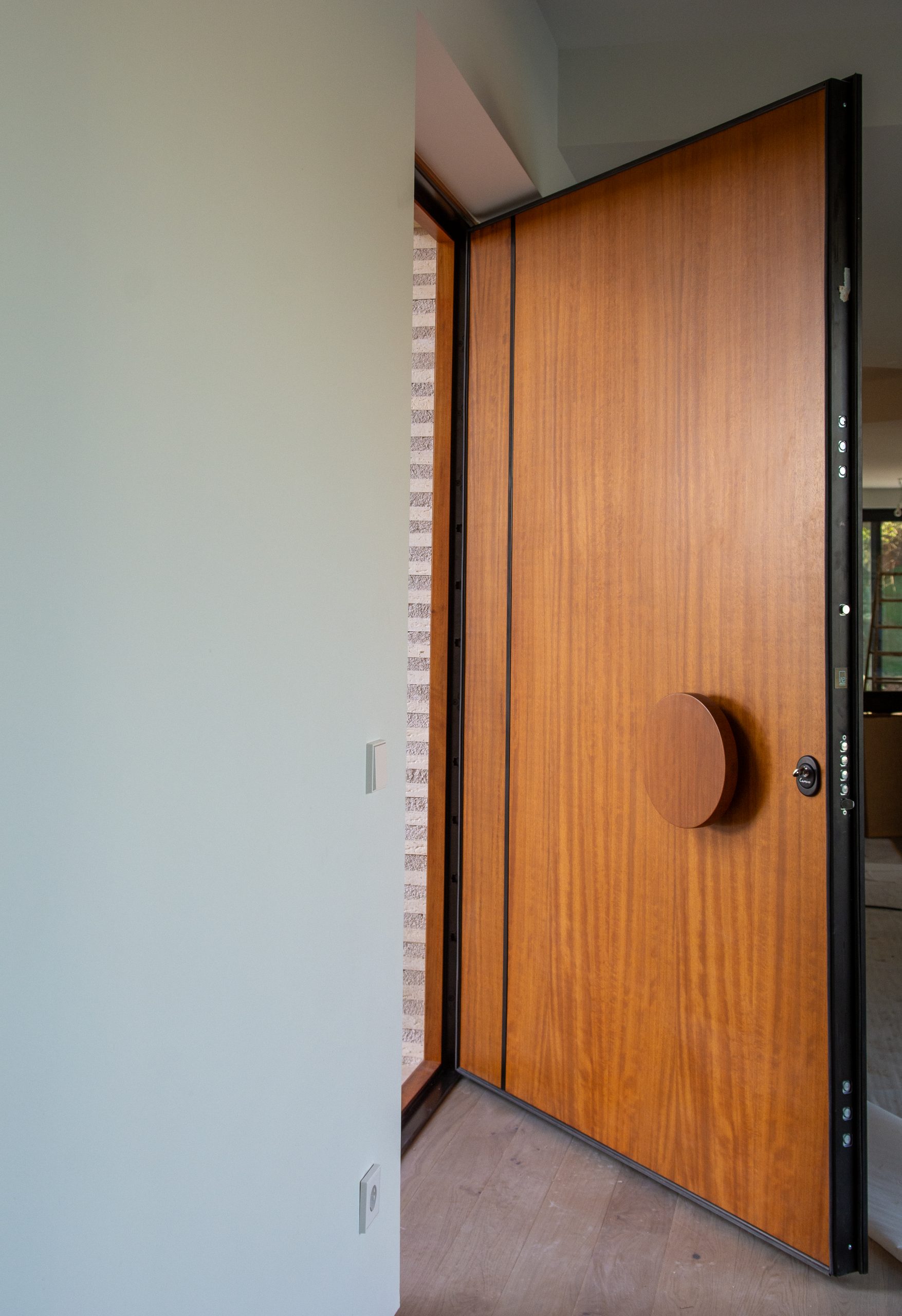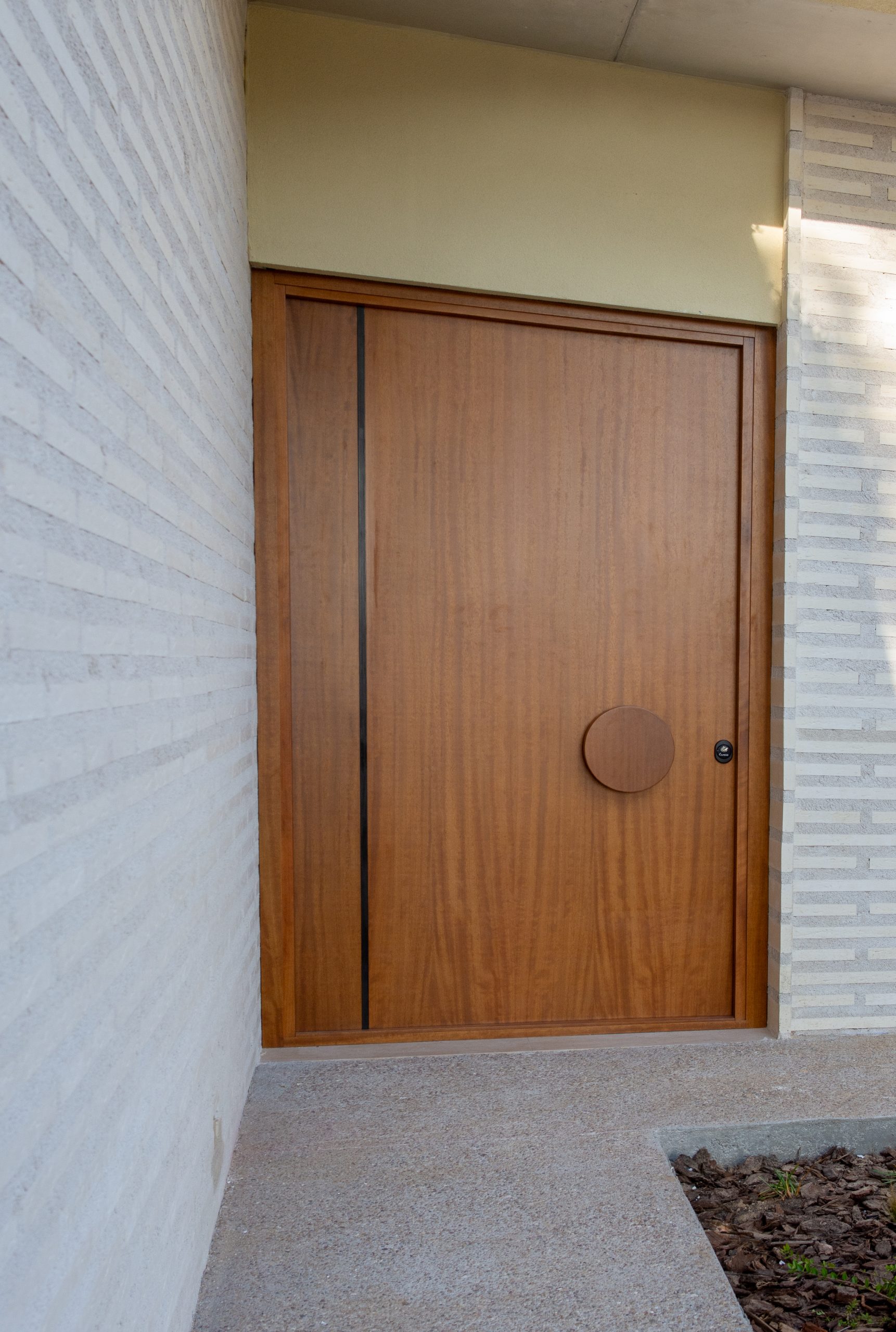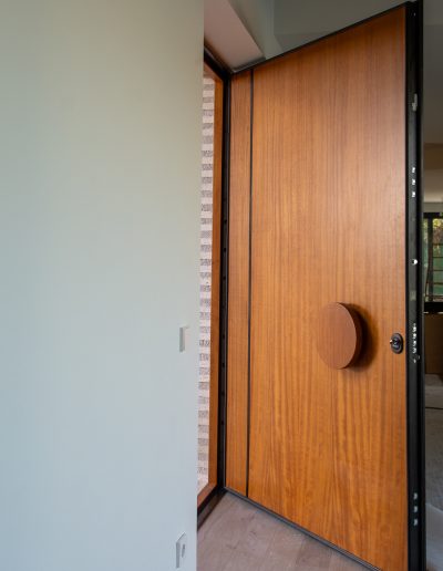 Instalación de puerta acorazada pivotante modelo KESO en vivienda unifamiliar de diseño contemporáneo