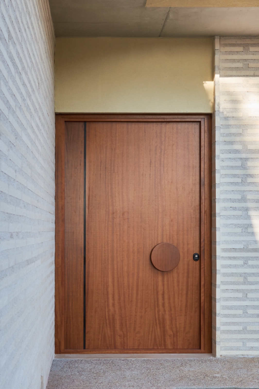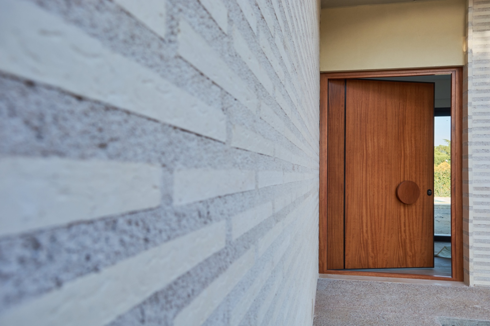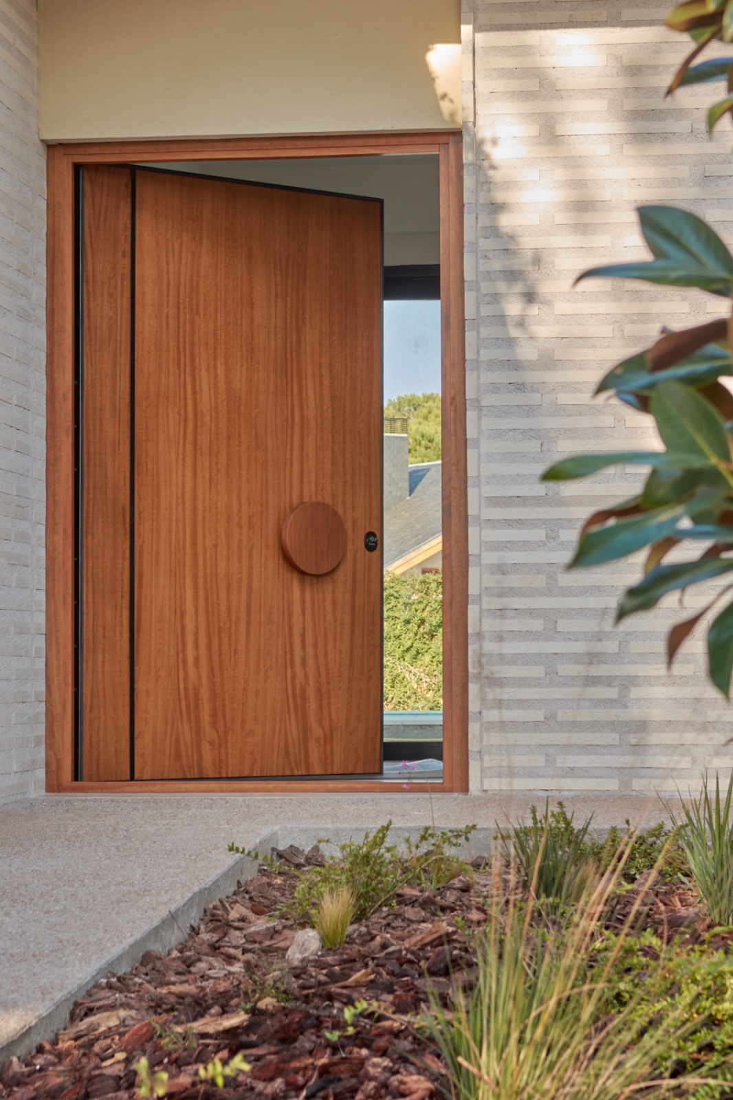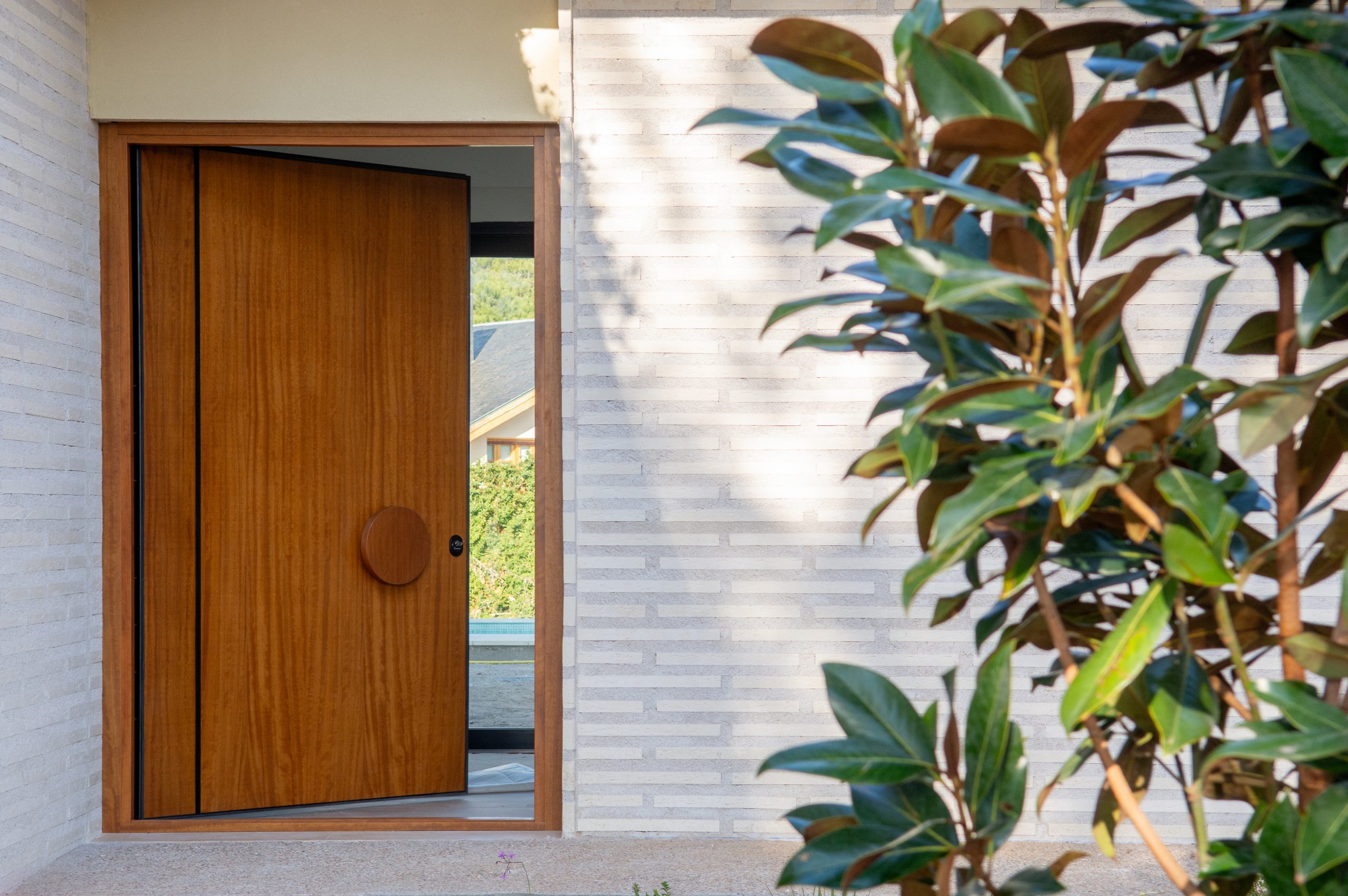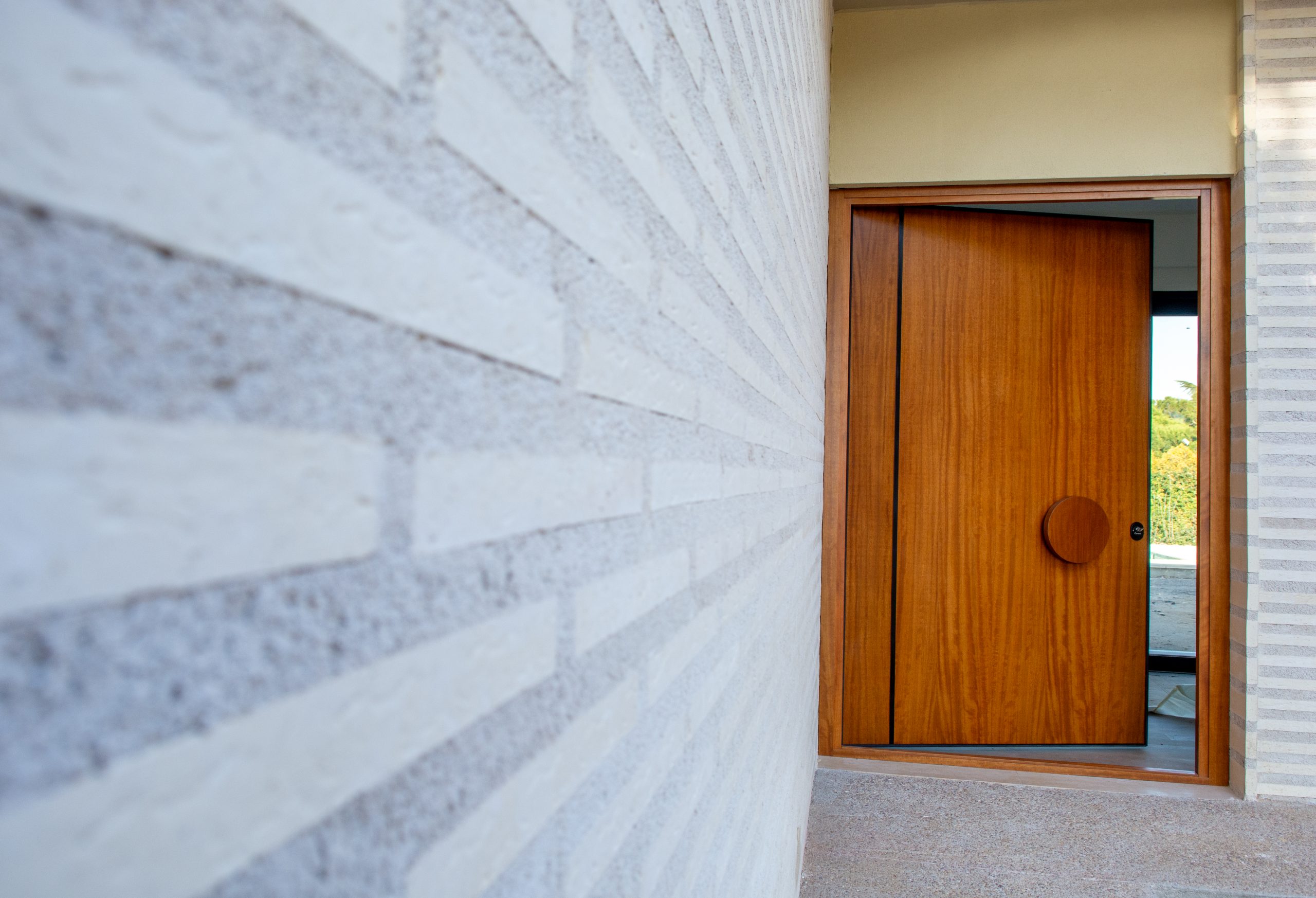 Instalación de puerta acorazada pivotante modelo KESO en vivienda unifamiliar de diseño contemporáneo