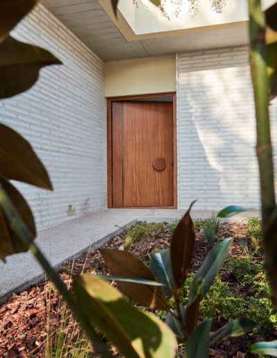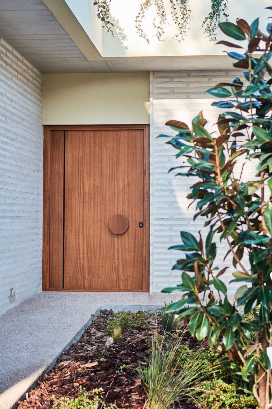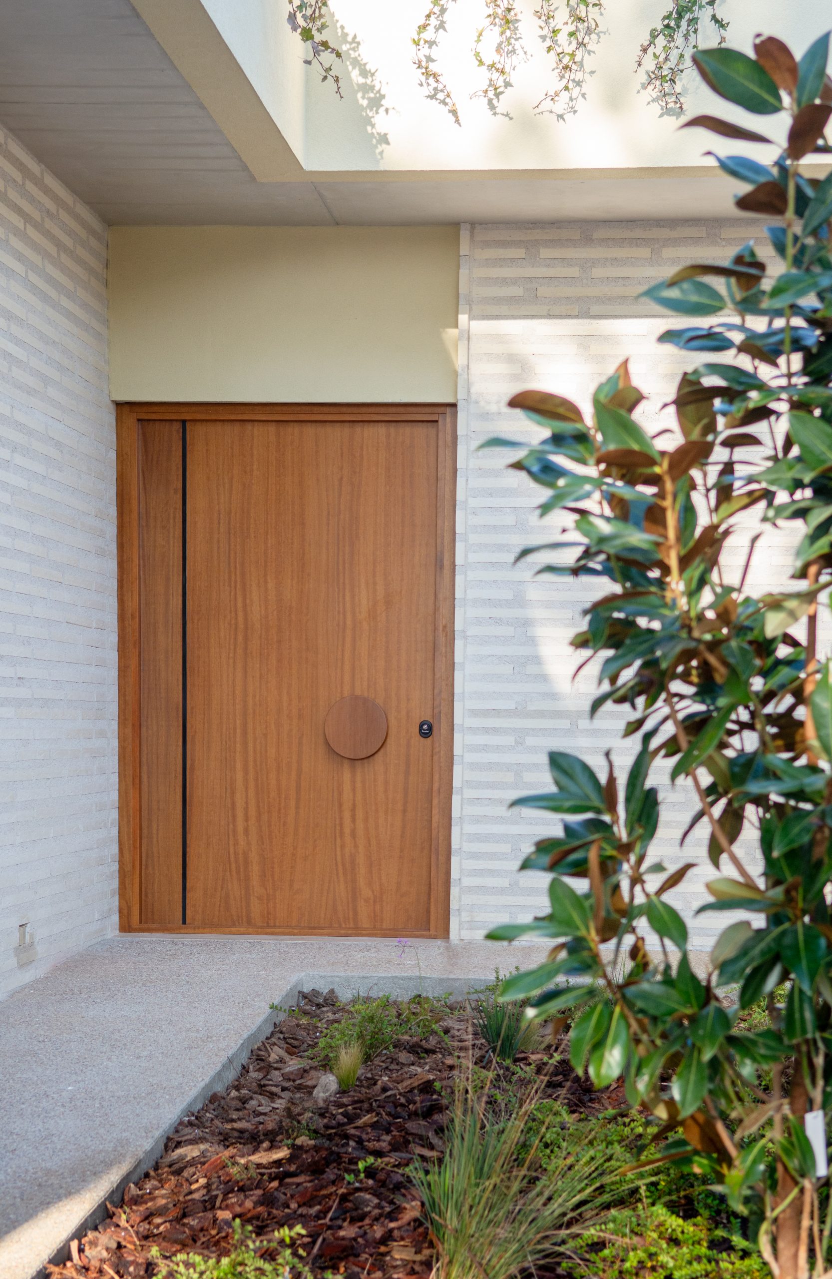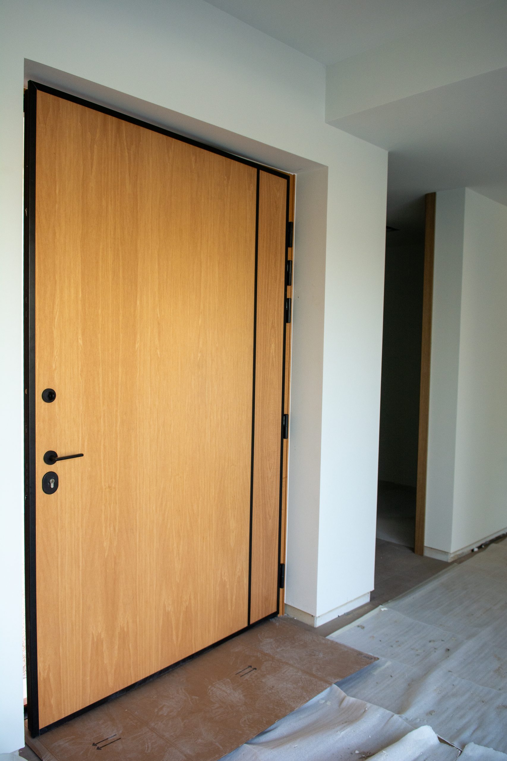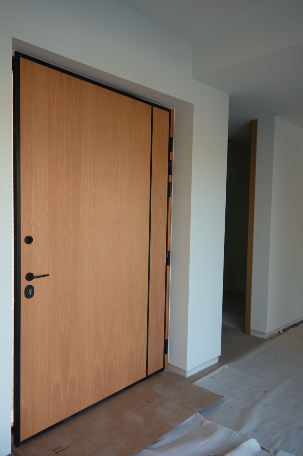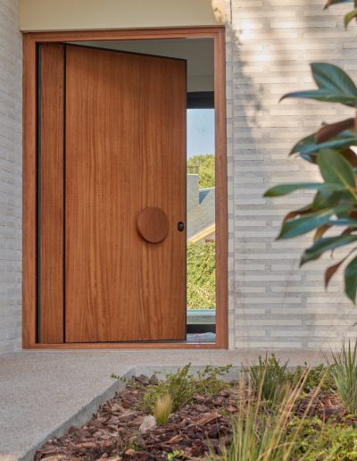 Instalación de puerta acorazada pivotante modelo KESO en vivienda unifamiliar de diseño contemporáneo