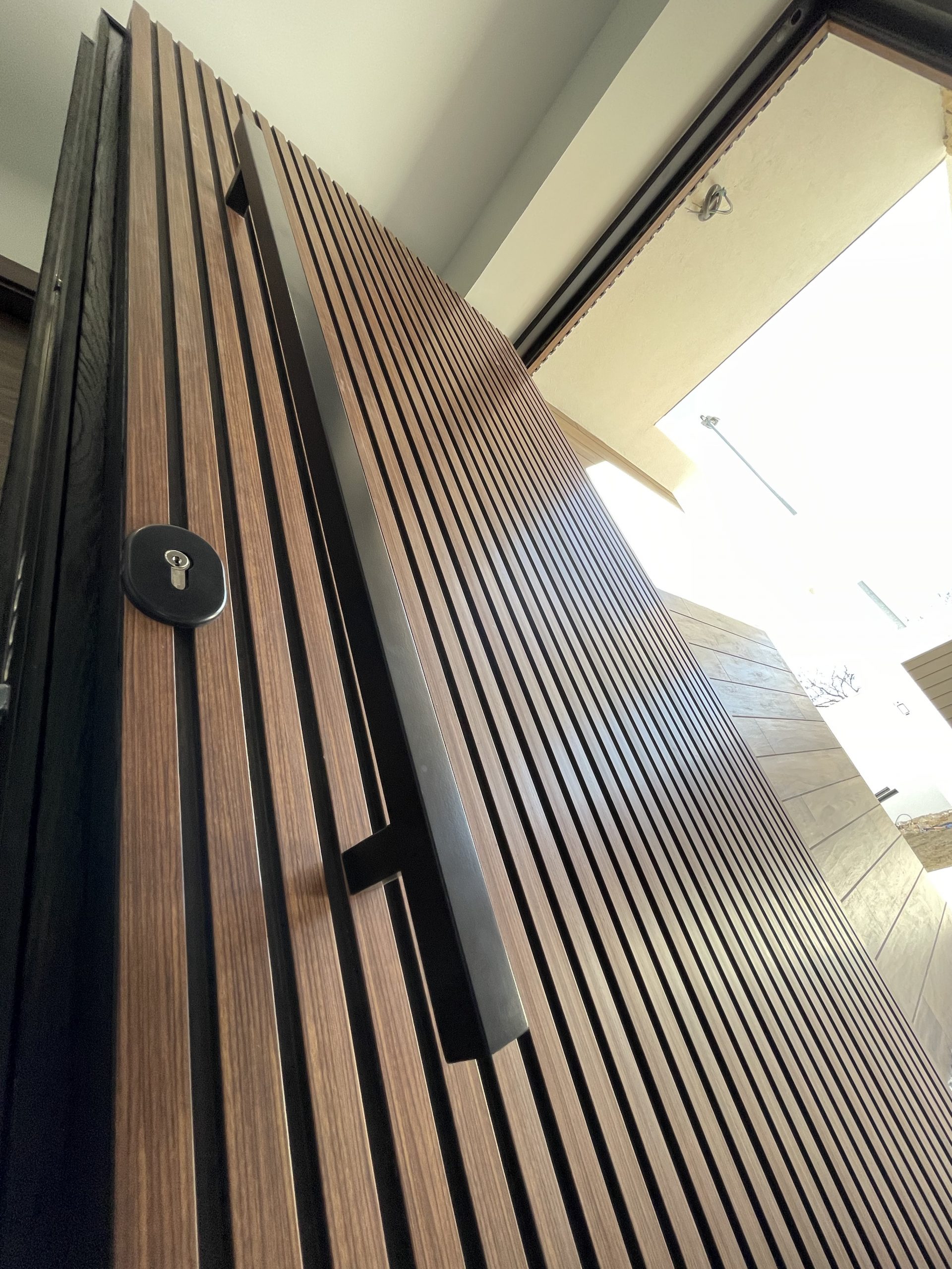 El objetivo de esta instalación era claro: conseguir una puerta que pasara prácticamente desapercibida a nivel estructural, pero que al mismo tiempo aportara un valor estético diferencial.